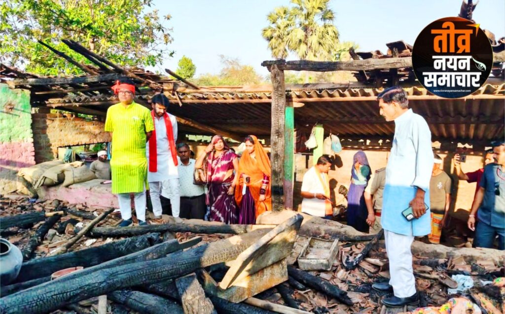 आलीराजपुर – जोबट के ग्राम बालादमूंग मे गरीब का मकान जल कर हुआ खाख , मंत्री नागर सिंह चौहान और सांसद चौहान घटना स्थल पर पहुँचे , कहा निजी खर्चे से बनवाएंगे नया मकान ।