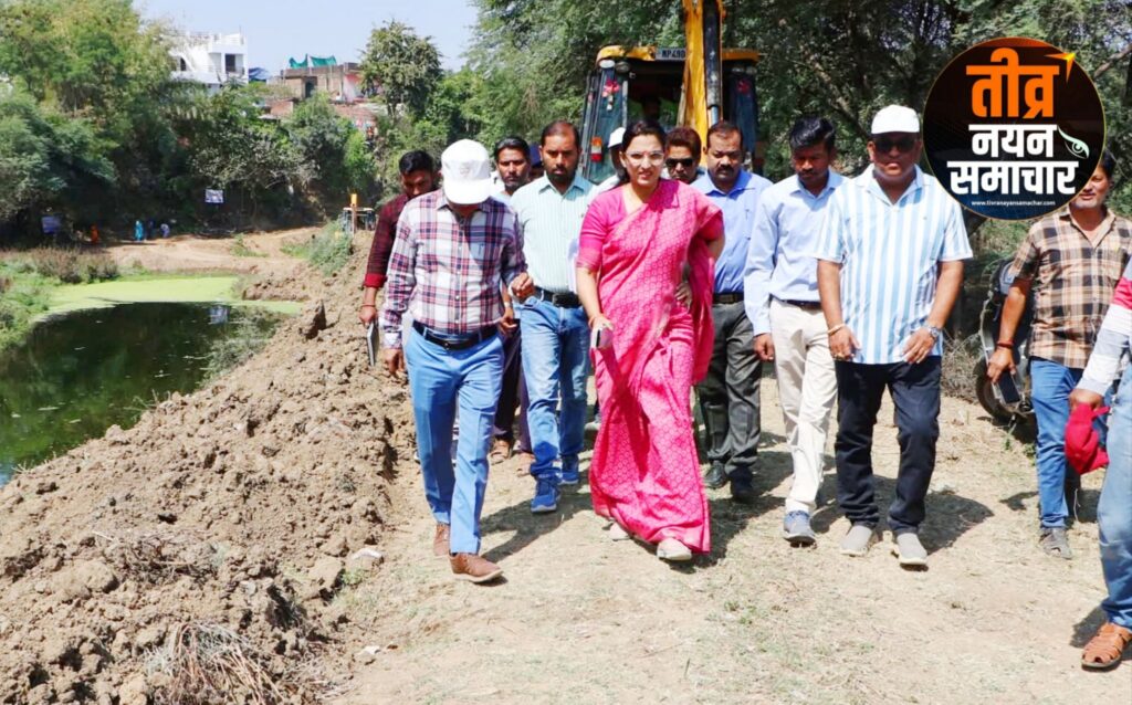 नरसिंहपुर – कलेक्टर रजनी सिंह ने किया सींगरी नदी पुनर्जीवन कार्यों का निरीक्षण , जल गंगा संवर्धन अभियान पर दिया जोर ।