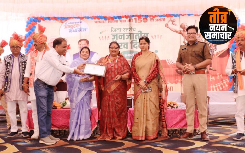 झाबुआ – भगवान बिरसा मुंडा की 150वीं जयंती के उपलक्ष्य में जिला स्तरीय जनजातीय गौरव दिवस समारोह का आयोजन दिलीप क्लब झाबुआ में किया गया , मुख्य अतिथियों के आगमन पर बालिकाओं द्वारा तिलक लगाकर पारंपरिक रूप से स्वागत किया गया , कार्यक्रम की शुरुआत कैबिनेट मंत्री द्वारा मां सरस्वती एवं बिरसा मुंडा व टांट्या मामा की तस्वीर पर दीप प्रज्वलन व माल्यार्पण कर की गई। इस अवसर पर बालिकाओं द्वारा सरस्वती वंदना की गई , कार्यक्रम में प्रधानमंत्री श्री नरेंद्र मोदी जी के लाइव प्रसारण को सुना गया। कार्यक्रम के दौरान विभिन्न विद्यालयों के छात्र छात्राओं द्वारा सांस्कृतिक कार्यक्रम की प्रस्तुति दी गई , कैबिनेट मंत्री महिला एवं बाल विकास विभाग सुश्री निर्मला भूरिया द्वारा बिरसा मुंडा की 150वीं जयंती के अवसर पर अपने उद्बोधन में कहा गया कि प्रदेश में प्रधानमंत्री जी द्वारा भगवान बिरसा मुंडा जयंती को गौरव दिवस का नाम दिया गया है। सदियों से हमने देखा है कि हमारे जनजातीय समाज के बहुत से ऐसे नायक रहे है जिन्होंने अंग्रेजों से लोहा लिया है देश को आजाद करवाने में समाज को आगे बढ़ाने में ऐसे क्रांतिकारी को शासन ने सम्मान दिया। ऐसे जननायकों को आने वाली पीढ़ी जाने इसलिए 1 नवम्बर से 15 नवम्बर 2025 तक पखवाड़े के तहत विभिन्न गतिविधियाँ आयोजित की गई , यही उनके लिए सच्ची श्रद्धांजलि है , कलेक्टर नेहा मीना द्वारा कहा कि आज जनजातीय गौरव दिवस के अवसर पर हमारे देश का जो युवा है वह जननायकों के संघर्ष व भगवान बिरसा मुंडा की जो गौरवशाली इतिहास रहा है उनका जो संघर्ष रहा उसे जाने और उसे आत्मसात करे , सभी को जनजातीय गौरव दिवस की शुभकामनाएं दी ।