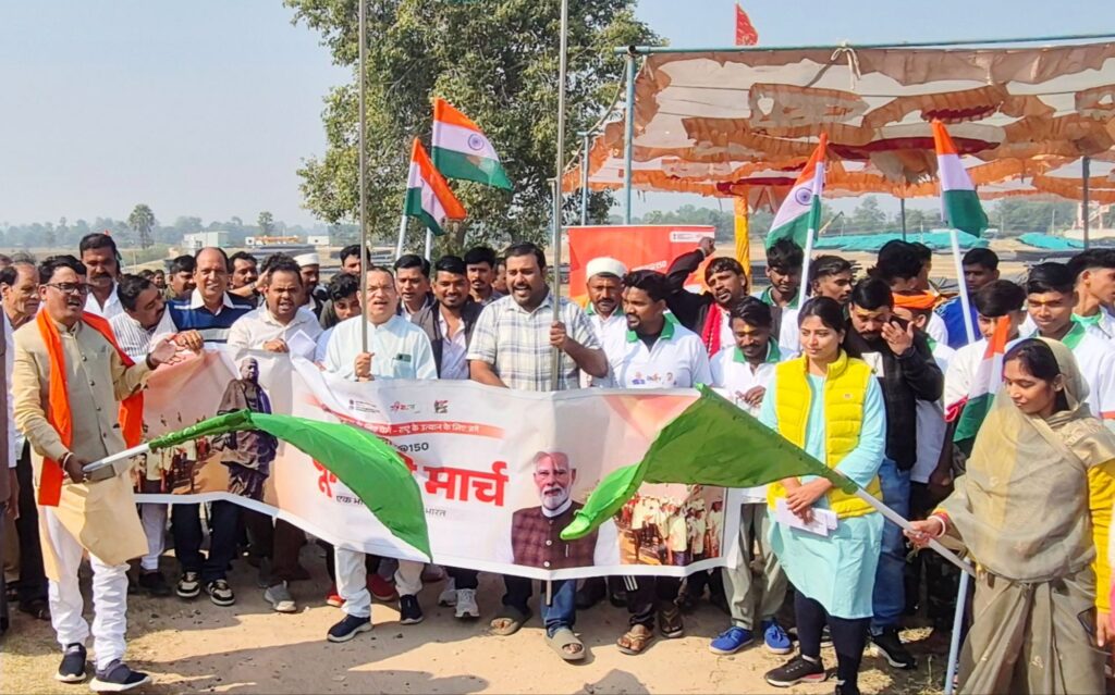 रामसिंह की चौकी से नगर होते हुए कानपुर माताजी मंदिर पहुंची यात्रा , शपथ पश्चात कैबिनेट मंत्री नागरसिंह चौहान एवं सांसद श्रीमती अनिता चौहान ने यात्रा को हरी झंडी देखा कर यात्रा को आगे बढ़ाया , इस सरदार 150 यूनिटी मार्च पद यात्रा ने कैबिनेट मंत्री श्री नागरसिंह चौहान, सांसद श्रीमती अनिता चौहान, भाजपा जिलाध्यक्ष श्री मकू परवाल , सरदार @150 यात्रा के जिला संयोजक एवं भाजपा जिला महामंत्री रिंकेश तंवर , सरदार @150 यात्रा के जिला सह संयोजक विधायक प्रतिनिधि गोविंदा गुप्ता, सह संयोजक एवं जिला मंत्री रितेश डावर , संतोष थेपड़िया , हितेंद्र शर्मा , बरझर से धन्नालाल सिसोदिया , लालसिंह जी , सरपंच महेश भूरिया , ग्रामीण मंडल अध्यक्ष सुरेश सस्तिया , नगर मंडल अध्यक्ष गिरिराज मोदी , युवा नेता हर्षजीत नागरसिंह चौहान , रामसिंह चौकी सरपंच अनूप डावर , राजू चौहान , वरिष्ठ दशरथ चंदेल , प्रताप सिसोदिया, मनोज उपाध्याय , अंतिम राठौड़ , दीपक परिहार , चिराग थेपड़िया सहित कई जनप्रतिनिधि की उपस्थिति में हुआ। जहां से यात्रा कलेक्टर कार्यालय होते हुए भगवान बिरसा मुंडा एवं छींतू किराड़ की प्रतिमा स्थल पहुंच कर मूर्ति को माल्यार्पण किया , यहां स्कूल के छोटे छोटे बच्चों ने यात्रा का स्वागत किया ।