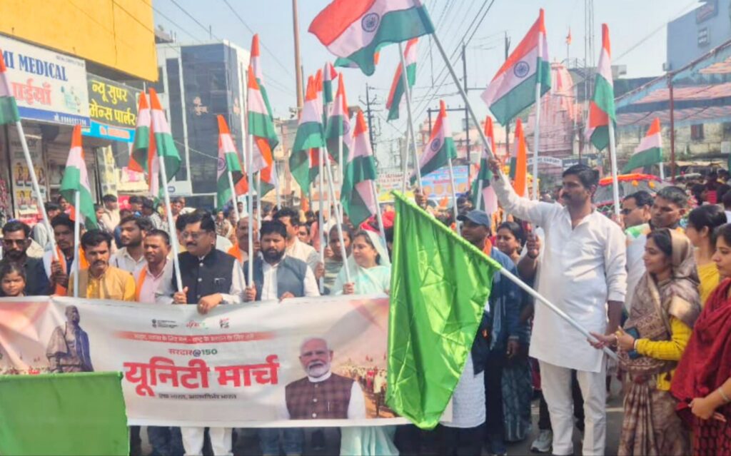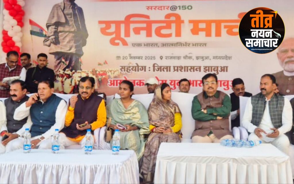 झाबुआ – नेहरू युवा केन्द्र एवं खेल एवं युवा कल्याण विभाग द्वारा जिला प्रशासन के सहयोग से “एक भारत, आत्मनिर्भर भारत” की संकल्पना को लेकर सरदार वल्लभभाई पटेल की 150वीं जयंती पर , सरदार@150 यूनिटी मार्च का भव्य आयोजन झाबुआ में किया गया। मार्च का प्रारंभ राजवाड़ा चौक से होकर बुनियादी स्कूल रोड, गांधी प्रतिमा, बस स्टैंड , आजाद चौक , डी.आर.पी. लाइन चौराहा , किशनपुरी , गढ़वाड़ा , मोहनपुरा मार्ग से होते हुए देवझीरी मंदिर पर सम्पन्न हुआ , प्रभारी मंत्री एवं कैबिनेट मंत्री , जनजातीय कार्य , लोक परिसंपत्ति प्रबंधन एवं भोपाल गैस त्रासदी राहत एवं पुनर्वास विभाग डॉ. कुँवर विजय शाह ने कार्यक्रम को संबोधित करते हुए कहा कि प्रधानमंत्री श्री नरेंद्र मोदी के नेतृत्व में देशभर में सरदार वल्लभभाई पटेल के अद्वितीय योगदान को स्मरण करने हेतु यूनिटी मार्च का आयोजन किया जा रहा है , उन्होंने कहा कि देश की अखंडता एवं एकीकरण में सरदार पटेल का योगदान आज के प्रत्येक युवा के लिए प्रेरणास्रोत है , युवाओं को उनके जीवन, त्याग और राष्ट्र निर्माण के कार्यों को जानना आवश्यक है , डॉ. शाह ने निर्देश दिए कि सरदार पटेल के जीवन पर आधारित वाद-विवाद एवं निबंध प्रतियोगिता आयोजित की जाए , जिसमें युवा वर्ग विशेष रूप से भाग लें ।