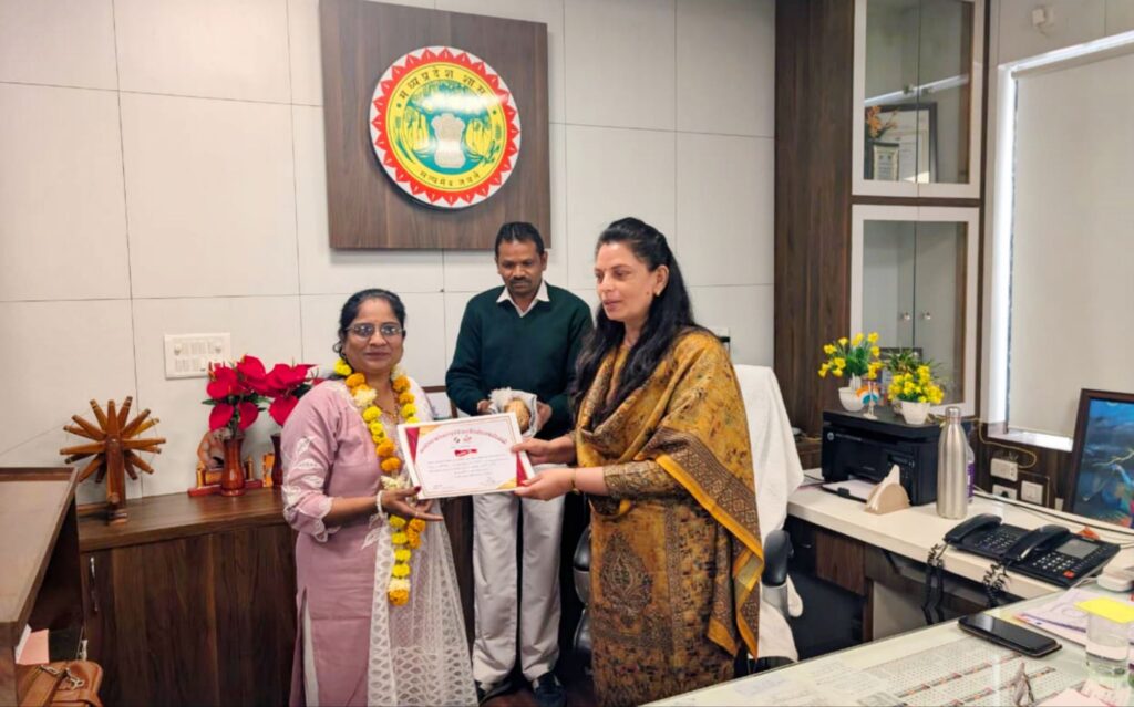 आलीराजपुर – मतदाता सूची के विशेष गहन पुनरीक्षण कार्य में उत्कृष्ट प्रदर्शन करने वाले जिले के 20 बूथ लेवल अधिकारियों (बीएलओ) को आज कलेक्टर एवं जिला निर्वाचन अधिकारी नीतू माथुर द्वारा कलेक्टर कार्यालय में सम्मानित किया गया , सभी बीएलओ को शत-प्रतिशत कार्य पूर्ण करने, समयबद्धता और समर्पित सेवाओं के लिए प्रशस्तिपत्र , शाल एवं श्रीफल प्रदान कर सम्मानित किया गया ।