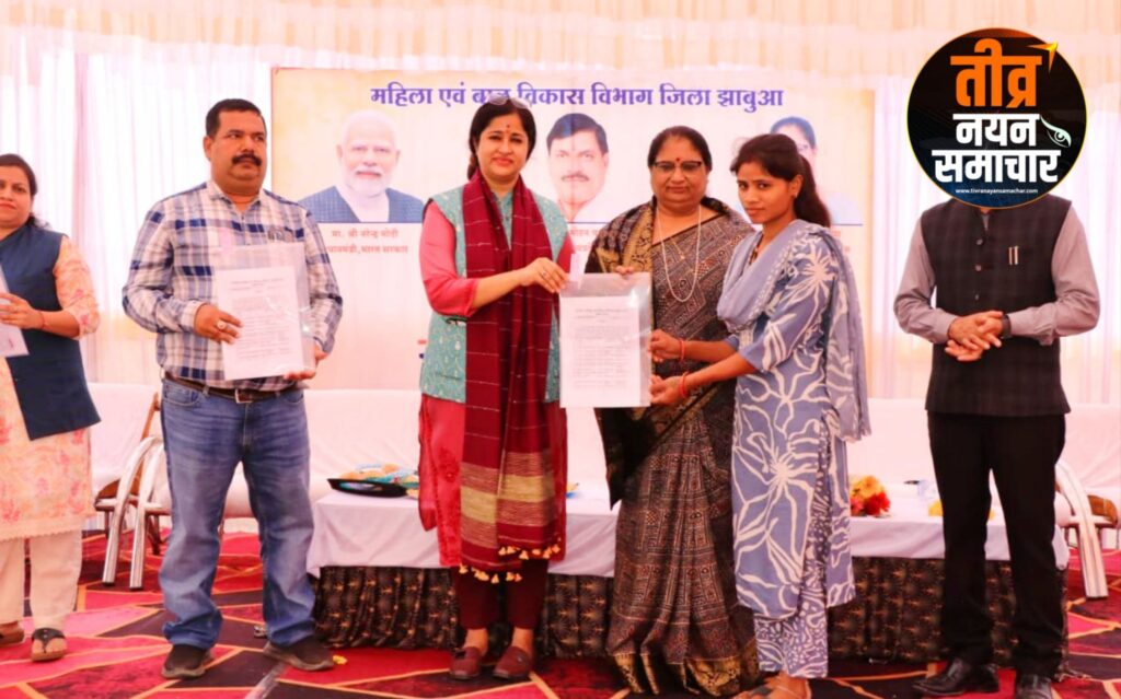 स्वरोजगार योजना के हितग्राहियों को ऋण वितरित किए :- मंत्री सुश्री निर्मला भूरिया द्वारा मध्यप्रदेश आदिवासी वित्त एवं विकास निगम झाबुआ की संचालित योजनाओं के अंतर्गत हितग्राहियों को ऋण वितरित किए गए। भगवान बिरसा मुंडा स्वरोजगार योजना के तहत श्रीमती ममता भूरिया को होटल–ढाबा व्यवसाय हेतु सेंट्रल बैंक झाबुआ द्वारा ₹10 लाख का ऋण प्रदान किया गया , टंट्या मामा आर्थिक कल्याण योजना के अंतर्गत श्रीमती रामतु भूरिया को किराना दुकान हेतु यूनियन बैंक झाबुआ द्वारा ₹1 लाख का ऋण तथा श्रीमती सोना बामनिया को टेलरिंग व्यवसाय हेतु बैंक ऑफ बड़ौदा झाबुआ द्वारा ₹1 लाख का ऋण स्वीकृत किया गया ।