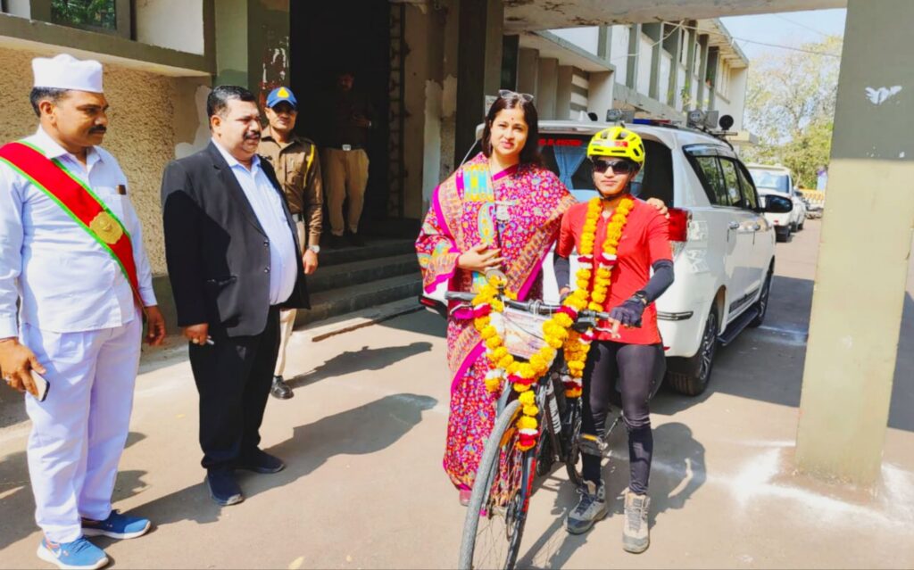 झाबुआ – कलेक्टर कार्यालय में कलेक्टर नेहा मीना द्वारा मध्यप्रदेश के राजगढ़ जिले की निवासी एवं राष्ट्रीय स्तर की सोलो साइकिलिस्ट आशा मालवीय का आत्मीय स्वागत एवं अभिनंदन किया गया । आशा मालवीय वर्तमान में भारत के पश्चिम से पूर्व तक साइकिल से यात्रा करने के साहसिक एवं प्रेरणादायक अभियान पर निकली हुई हैं , यह साइकिल यात्रा कुल लगभग 7,800 किलोमीटर की है , जिसकी शुरुआत 11 जनवरी को जयपुर (राजस्थान) से हुई है तथा यह यात्रा भारत के पूर्वी छोर किबिथू (अरुणाचल प्रदेश) तक पूर्ण की जाएगी । आशा मालवीय द्वारा अब तक लगभग 2400 किलोमीटर की दूरी सफलतापूर्वक तय की जा चुकी है , इस यात्रा का मुख्य उद्देश्य नारी सशक्तिकरण , राष्ट्रप्रेम , अदम्य साहस , बेटी बचाओ बेटी पढ़ाओ जैसे राष्ट्रीय संदेशों को जन-जन तक पहुँचाना है । उल्लेखनीय है कि आशा मालवीय अब तक लगभग 60,000 किलोमीटर की साइकिल यात्रा पूर्ण कर चुकी हैं , जिसमें कन्याकुमारी से सियाचिन तक की अत्यंत कठिन एवं चुनौतीपूर्ण यात्रा भी शामिल है , इस अवसर पर आशा मालवीय ने अपने अनुभव साझा करते हुए बताया कि यह यात्रा केवल शारीरिक क्षमता ही नहीं , बल्कि महिलाओं को अपनी क्षमताओं को पहचानने , आत्मविश्वास विकसित करने तथा प्रत्येक क्षेत्र में आगे बढ़ने के लिए प्रेरित करने का एक सशक्त माध्यम है । उन्होंने बताया कि वे अपने जीवन में अपनी माता को अपना प्रेरणास्रोत मानती हैं तथा युवा वर्ग को बड़े सपने देखने और उन्हें पूर्ण करने के लिए निरंतर प्रयासरत रहने की प्रेरणा देती हैं ।