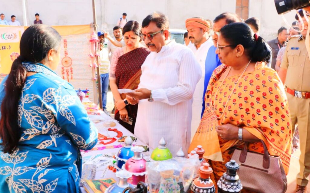 प्रदर्शनी का अवलोकन :- कार्यक्रम स्थल पर विभिन्न विभागों द्वारा आकर्षक एवं जानकारीपरक प्रदर्शनी लगाई गई। प्रभारी मंत्री द्वारा किसान कल्याण एवं कृषि, उद्यानिकी, आजीविका मिशन, महिला एवं बाल विकास, स्वास्थ्य, आयुष, पशुपालन एवं सामाजिक न्याय विभाग की प्रदर्शनी का अवलोकन किया गया। उन्होंने विभागीय योजनाओं के प्रभावी क्रियान्वयन एवं व्यापक प्रचार-प्रसार के निर्देश देते हुए प्रदर्शनी की सराहना की ।